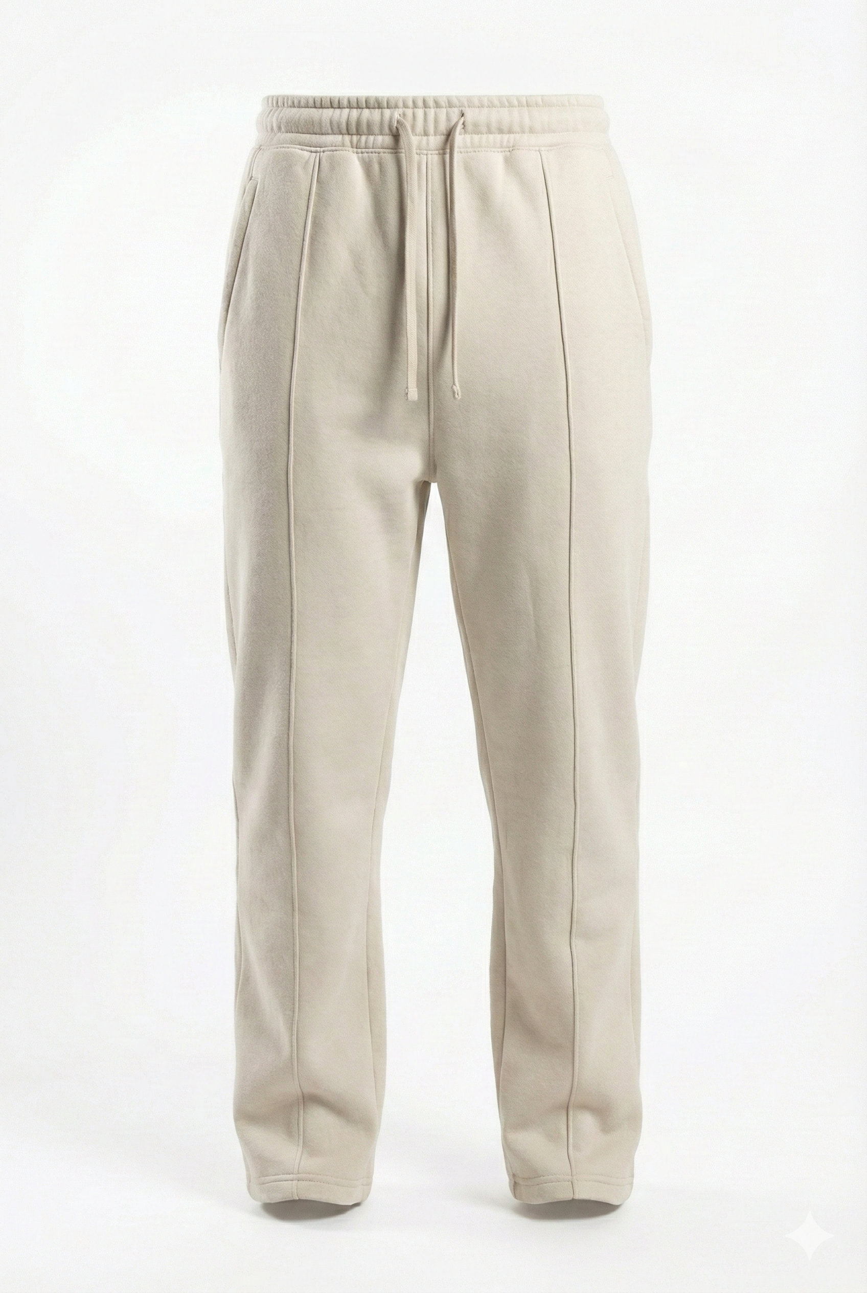 - The Bottom: Straight-leg trousers with an adjustable drawstring waistband and reinforced stitching for a clean, vertical drape.