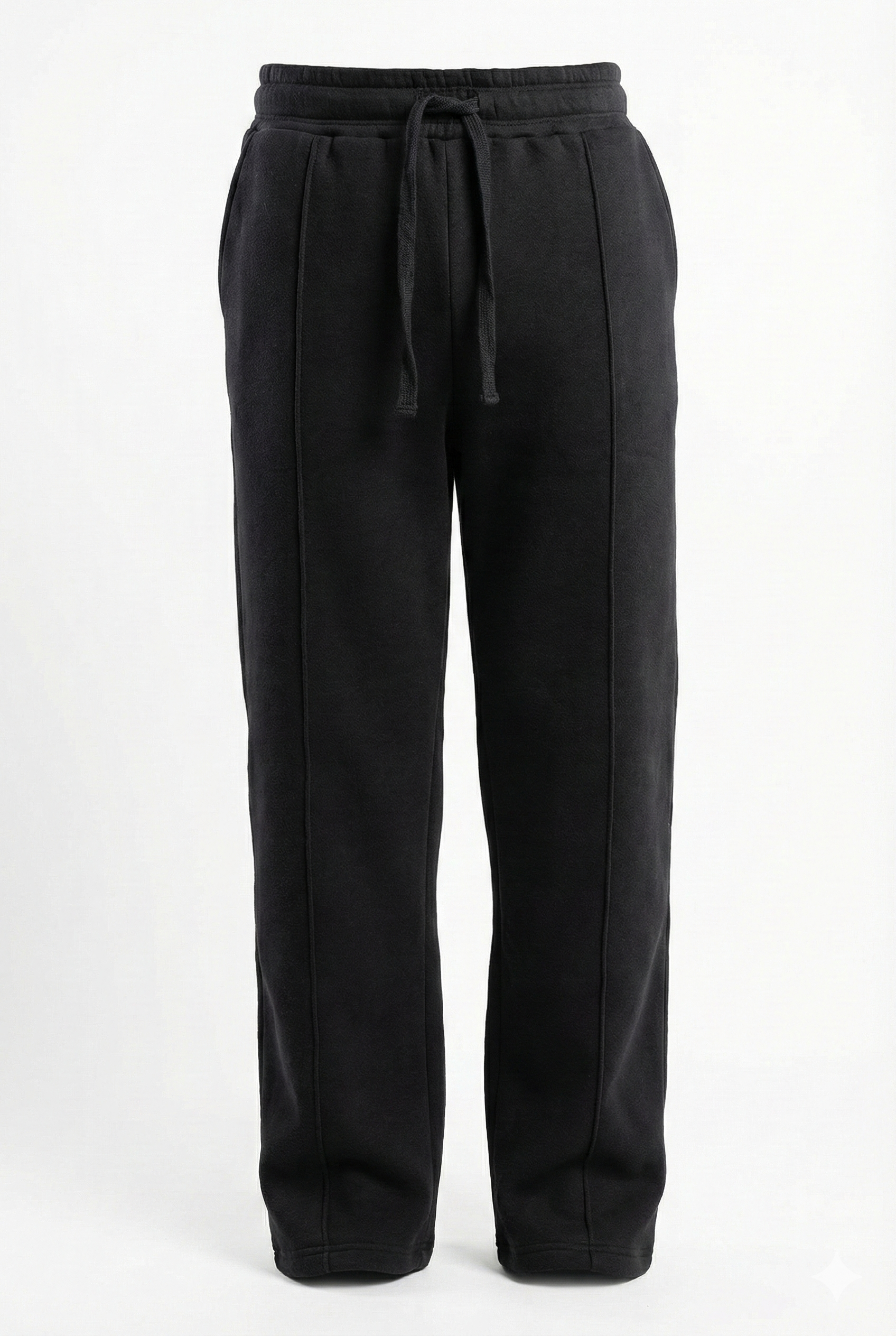 - The Bottom: Straight-leg trousers with an adjustable drawstring waistband and reinforced stitching for a clean, vertical drape.