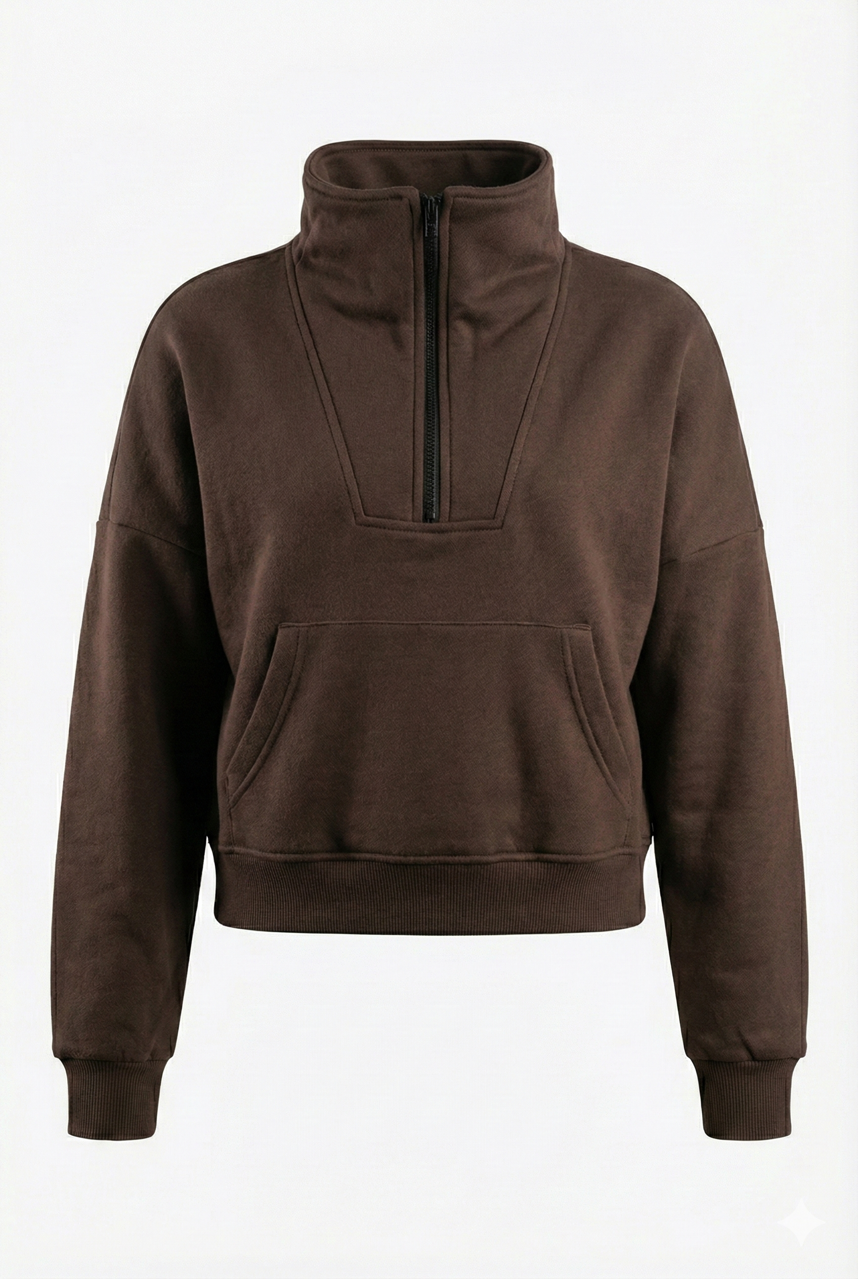 - The Top: Boxy fit half-zip pullover with drop shoulders, V-yoke stitching details, and a functional kangaroo pocket.